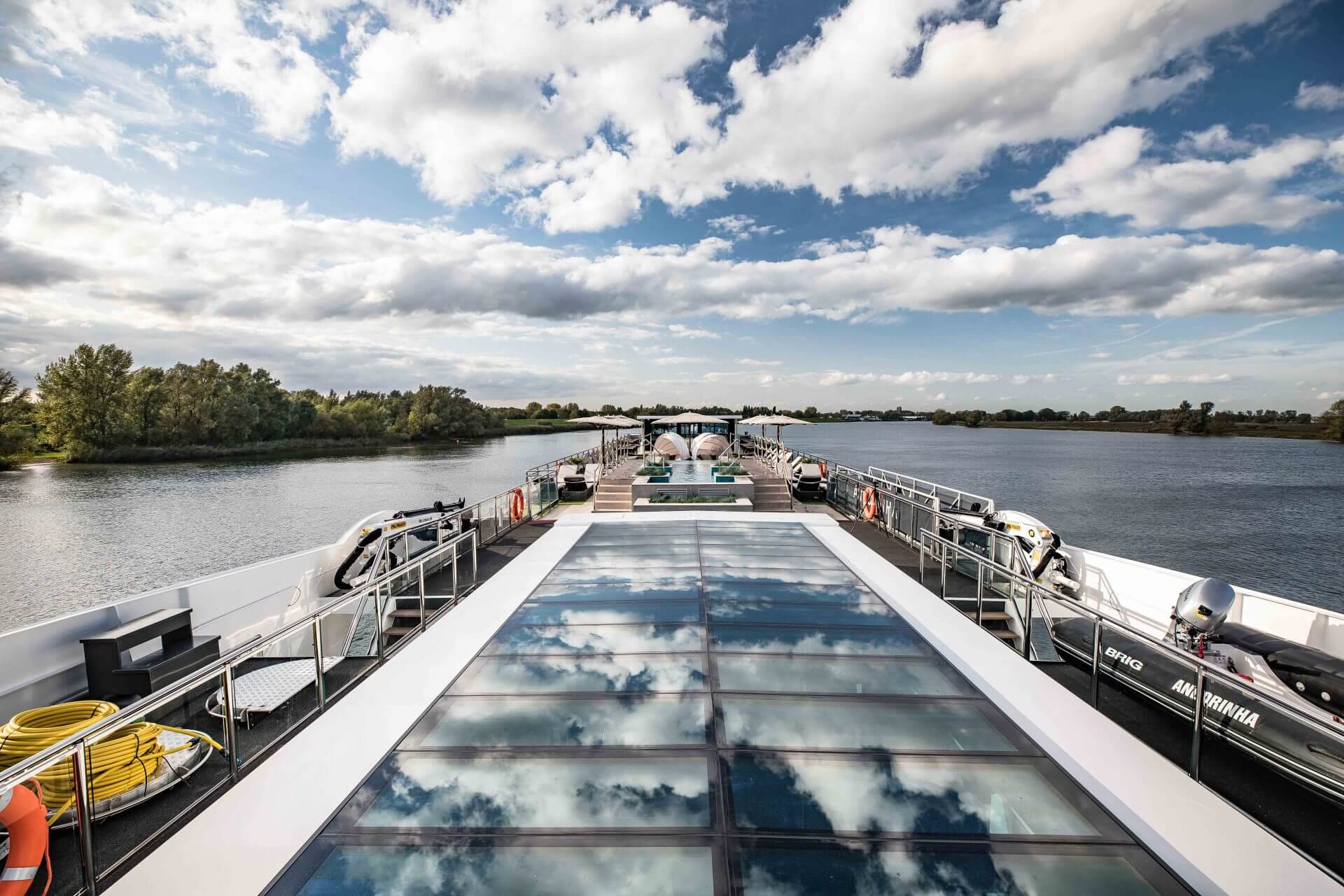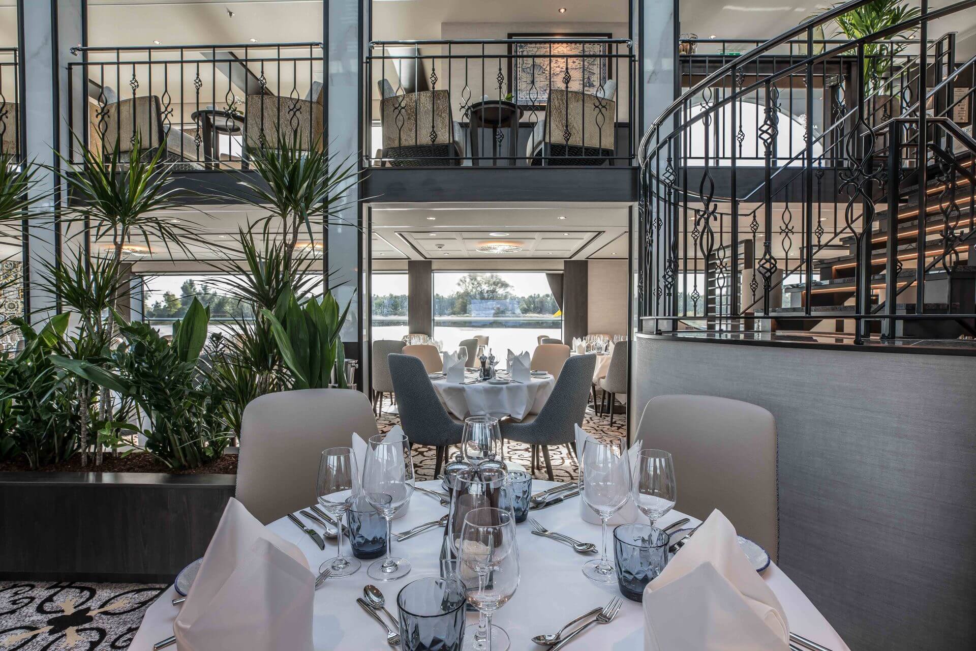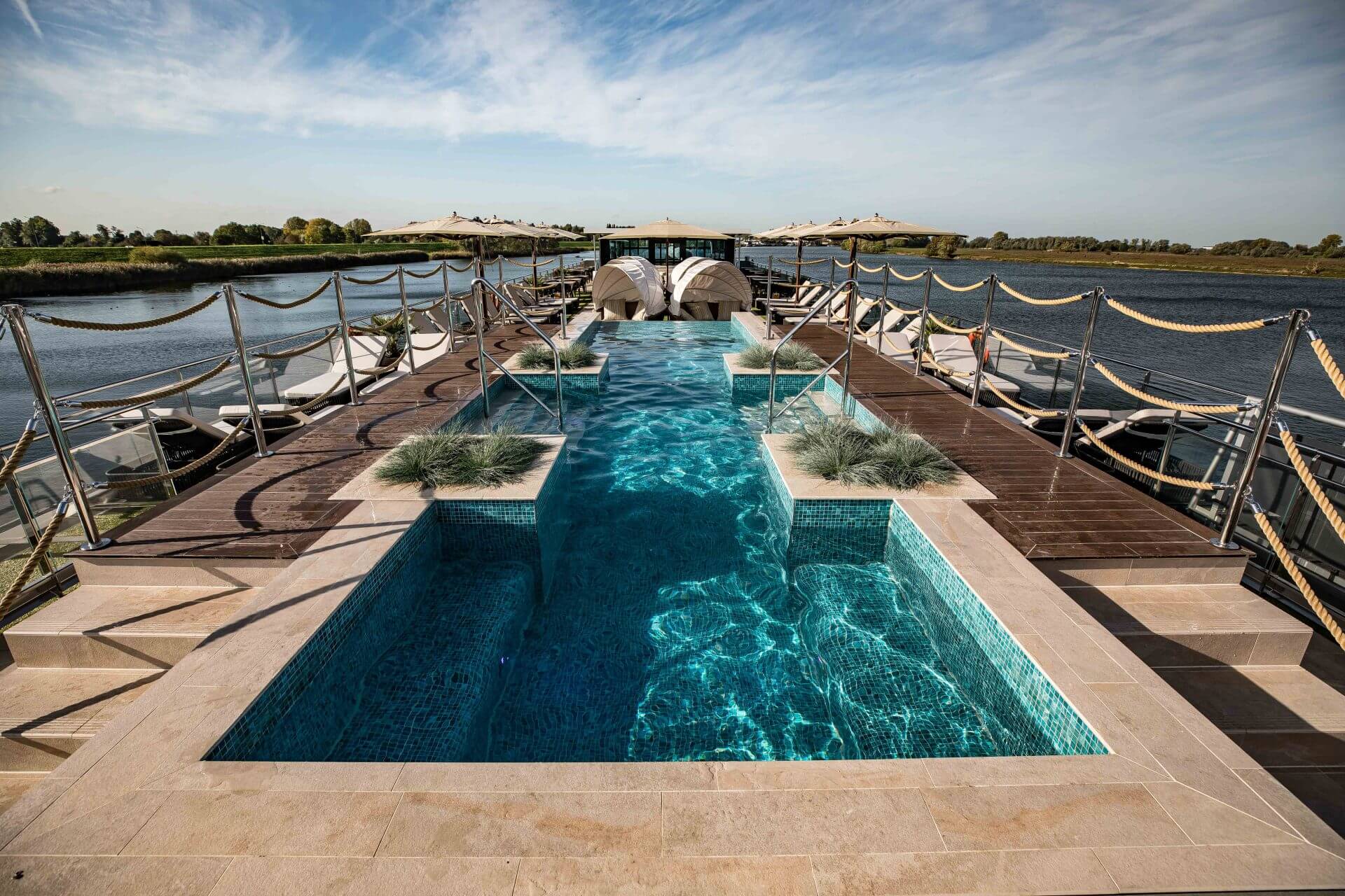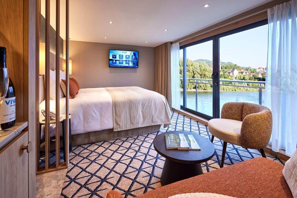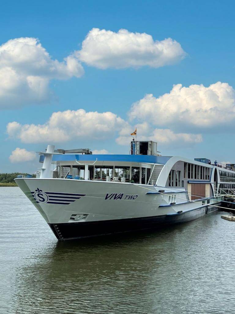 The MS VIVA TWO is the second new build of VIVA Cruises and has 95 cabins and hosts up to 190 passengers on board the luxury ship. On the diamond deck are eight luxurious suites all 24 m² and including French balconies to enjoy the beautiful view.