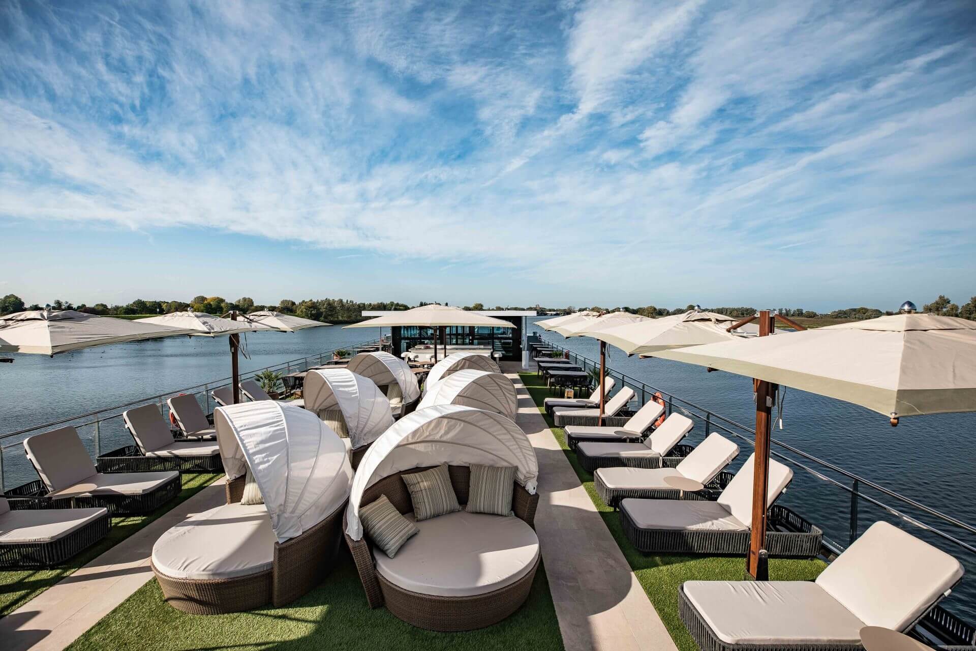 All cabins are equipped with flat screen TVs, included minibars, Nespresso® machines, beauty products from RITUALS®, hairdryers, safes, air conditioning, and full baths.