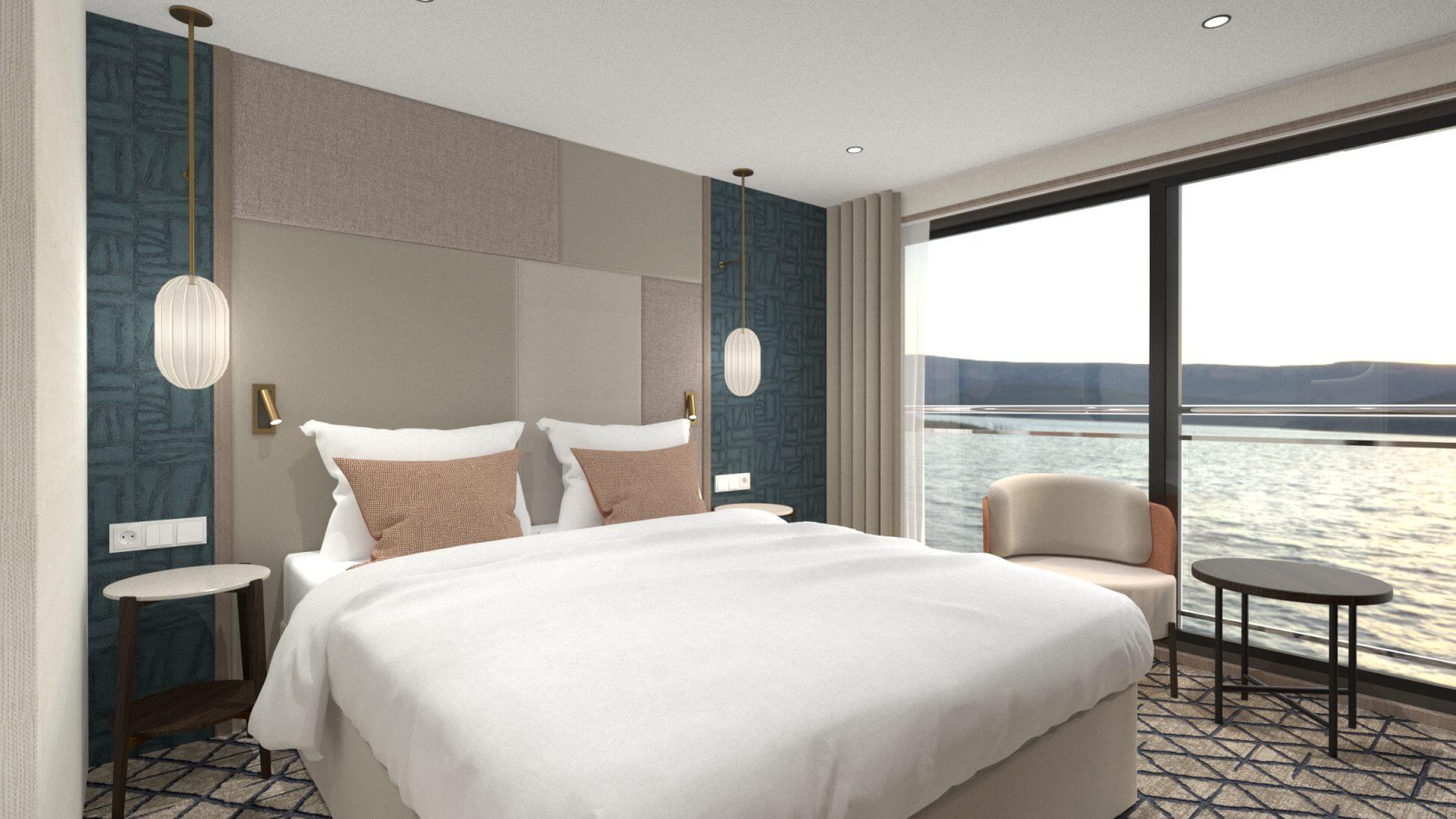 On the Diamond Deck, as well as on the Ruby Deck, there are 15 m² large 2-bed cabins, all with French balconies.